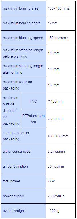 PVC步進(jìn)方式,在PVC加熱板之前和成型臺之后兩處氣動夾特點,由于采用雙夾持步進(jìn),可防止加熱區(qū)內(nèi)已經(jīng)被加熱軟件的PVC片由于受快速牽拉移動而造成拉伸變形,影響泡罩質(zhì)量。本機可以實現(xiàn)高速成型,又能保證良好的泡罩質(zhì)量。
